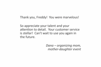 The photos I take at your event, you’ll look at them in six months – and in 27 years – and you’ll remember.